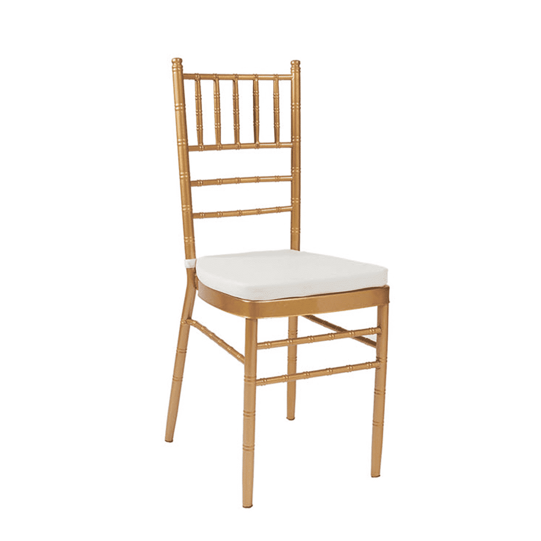 Our Golden Chiavari Chair Rental includes a cushion in white or gold based on availability.