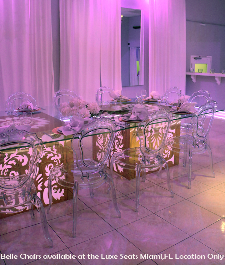 An elegant Opulence Table Rental includes LED lights available in Atlanta, Ga and surrounding areas.