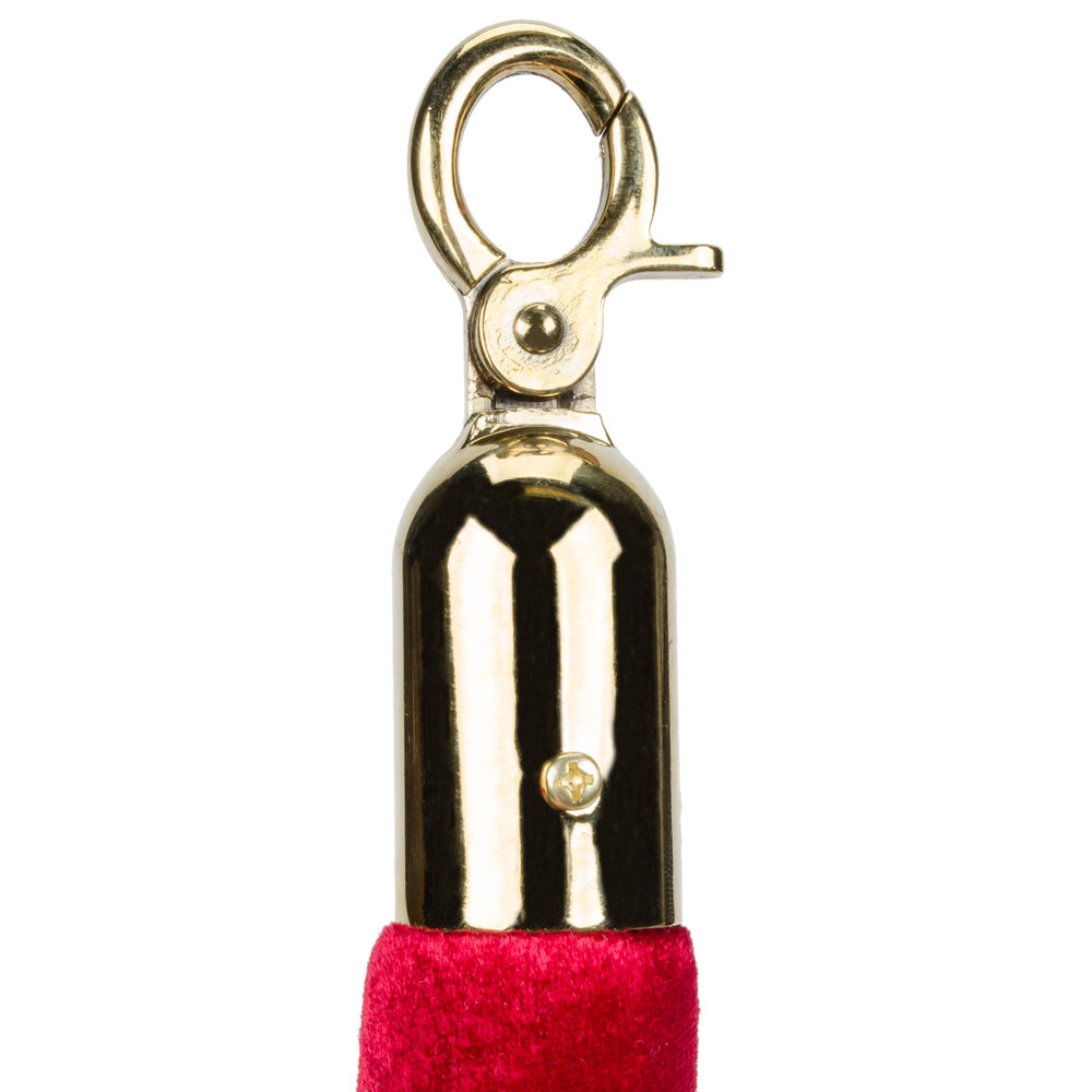 Stanchion rope with brass ends is made of a fibrous core material wrapped in a velour.