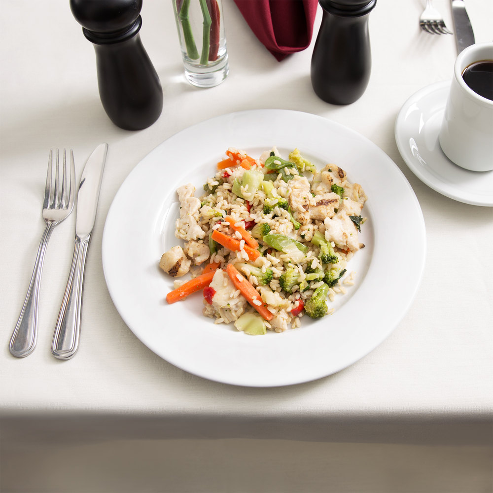 Providing durability and high-quality appearance at an economical price, this China is a go-to piece for all dining events. The clean lines and bright white shine of this plate will turn all of your culinary creations into eye-catching masterpieces. Designed with daily use in mind, this collection is dishwasher, microwave, and oven safe. This plate is fully vitrified to prevent moisture absorption. This durable piece stands up against breakage, chipping, and scratches commonly caused by the wear and tear of everyday use.